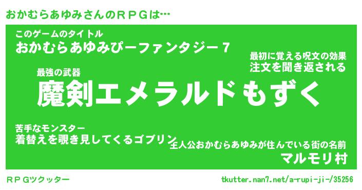| 胡散臭い通販商品みたいなあだ名 | 『必ず成功する霊験あらたかなお札…その名も「おかむらあゆみ」』 |