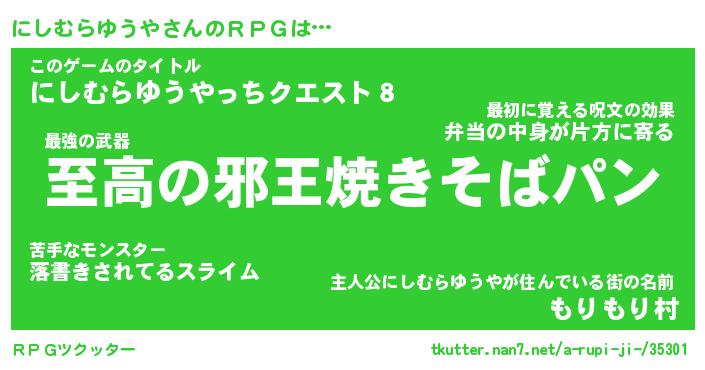| 男性向けラノベタイトル風あだ名 | 『ニシムラユウヤアートオンライン』 |