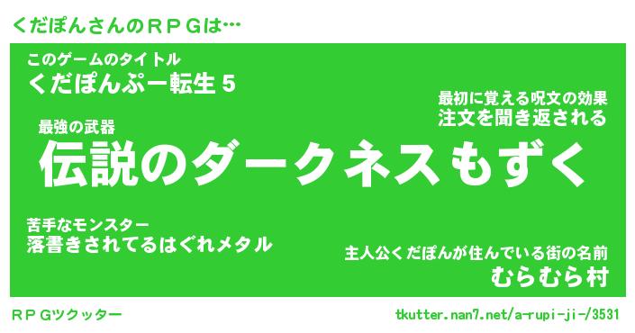 | 男性向けラノベタイトル風あだ名 | 『くだぽんの憂鬱』 |