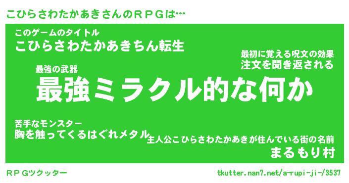 | 男性向けラノベタイトル風あだ名 | 『コヒラサワタカアキアートオンライン』 |