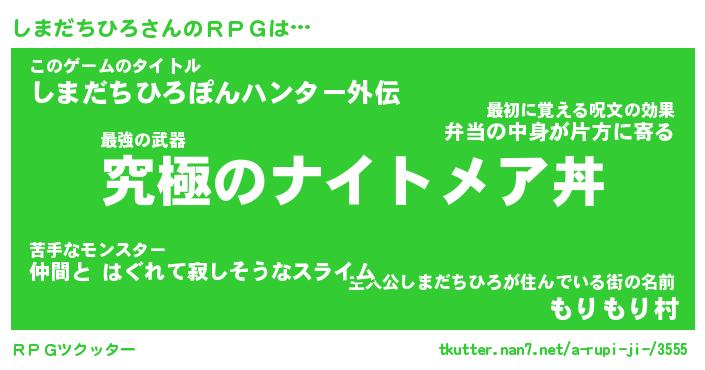 | 男性向けラノベタイトル風あだ名 | 『シマダチヒロアートオンライン』 |