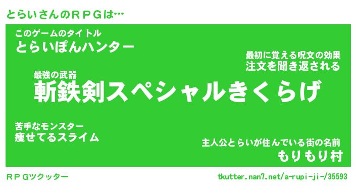 | 男性向けラノベタイトル風あだ名 | 『とらいの憂鬱』 |