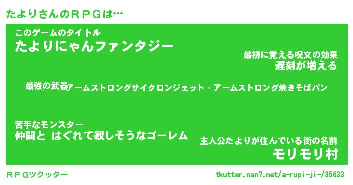 | 男性向けラノベタイトル風あだ名 | 『タヨリアートオンライン』 |