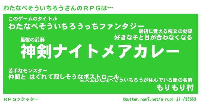 | 男性向けラノベタイトル風あだ名 | 『わたなべそういちろうの憂鬱』 |