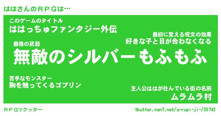 | ポケモン風あだ名 | 『ハハチュウ』『ハハダネ』『ヒハハ』 |
