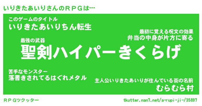 | 胡散臭い通販商品みたいなあだ名 | 『必ず成功するブレスレット…その名も「いりきたあいり」』 |