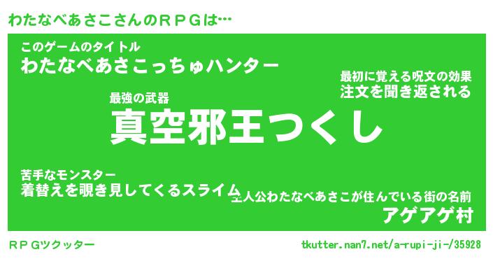 | ヒーロー風カッコイイあだ名 | 『スーパーワタナベアサコ』 |