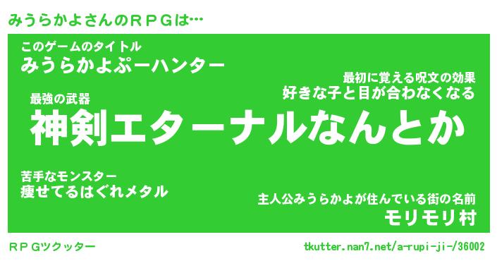 | ファンタジー風あだ名 | 『ミウフェル』『エターナルミウラカヨー』 |