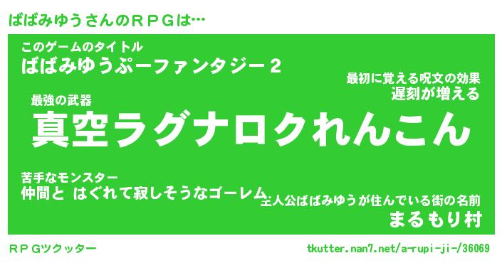 | 男性向けラノベタイトル風あだ名 | 『ババミユウアートオンライン』 |