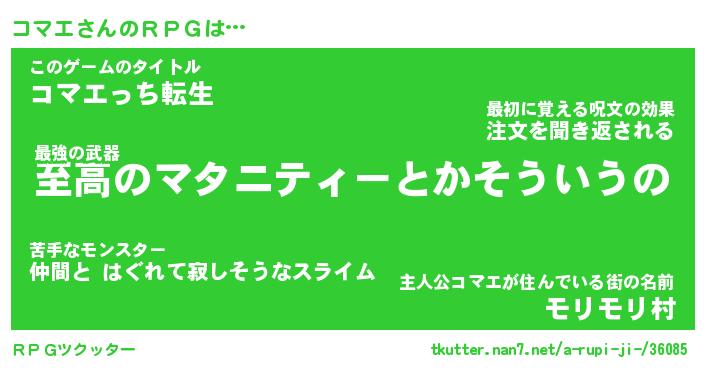 | 男性向けラノベタイトル風あだ名 | 『コマエアートオンライン』 |