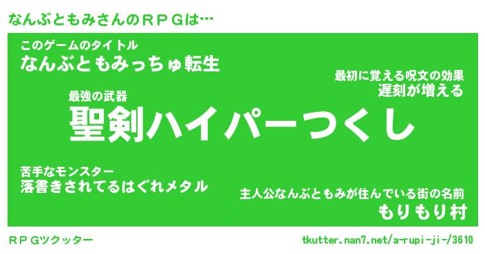 | ヒーロー風カッコイイあだ名 | 『スーパーナンブトモミ』『幻影騎士ナン』 |
