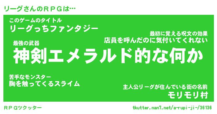 | ファンタジー風あだ名 | 『リーフェル』『エターナルリーグー』 |