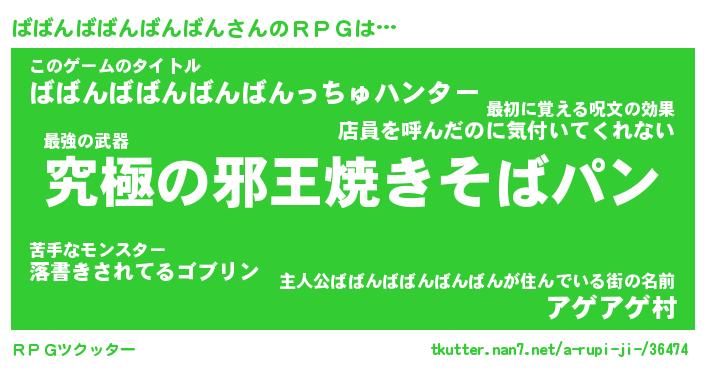 | 男性向けラノベタイトル風あだ名 | 『ババンババンバンバンアートオンライン』 |