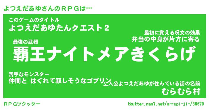 | 胡散臭い通販商品みたいなあだ名 | 『億万長者になれる霊験あらたかなお札…その名も「よつえだあゆ」』 |