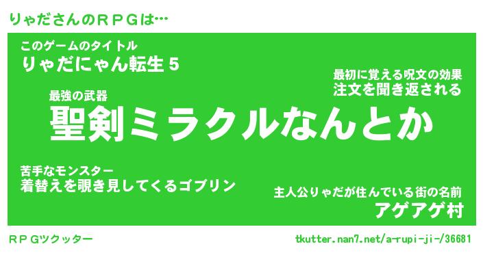 | 男性向けラノベタイトル風あだ名 | 『りゃだの憂鬱』 |