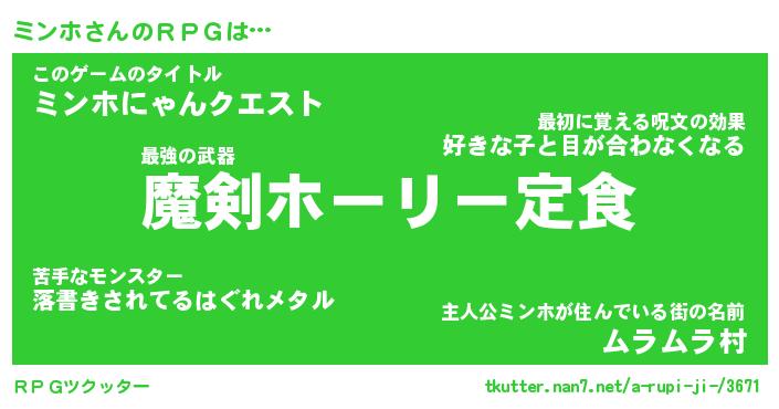 | ファンタジー風あだ名 | 『ミンフェル』『エターナルミンホー』 |