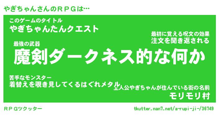| ファンタジー風あだ名 | 『ヤギフェル』『エターナルヤギチャンー』 |