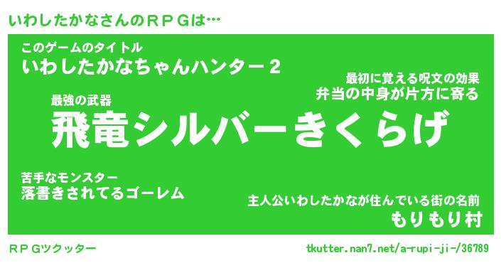 | 男性向けラノベタイトル風あだ名 | 『イワシタカナアートオンライン』 |