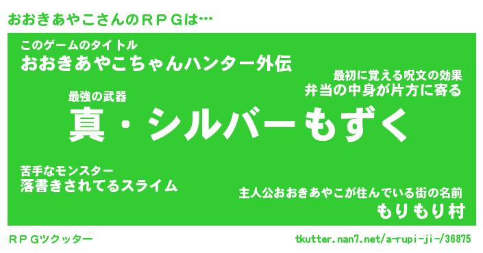 | 男性向けラノベタイトル風あだ名 | 『オオキアヤコアートオンライン』 |