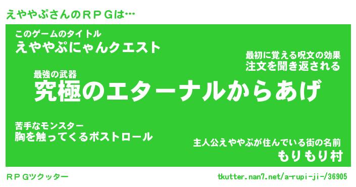| 男性向けラノベタイトル風あだ名 | 『えややぷの憂鬱』 |