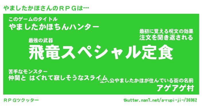 | 男性向けラノベタイトル風あだ名 | 『ヤマシタカホアートオンライン』 |