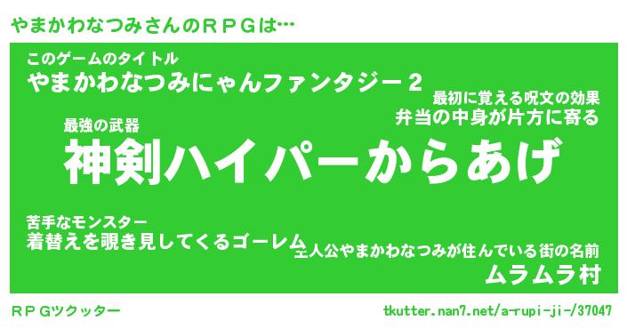 | 男性向けラノベタイトル風あだ名 | 『やまかわなつみの憂鬱』 |