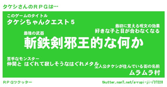 | ファンタジー風あだ名 | 『タケフェル』『エターナルタケシー』 |