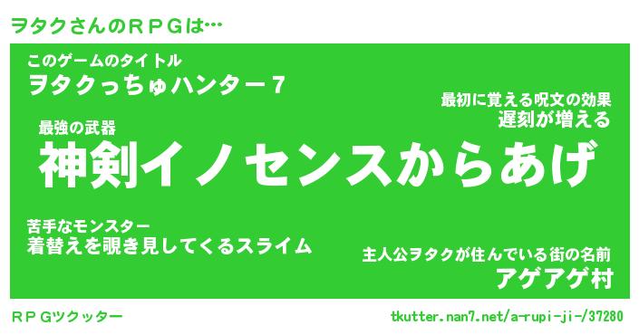 | ファンタジー風あだ名 | 『ヲタフェル』『エターナルヲタクー』 |
