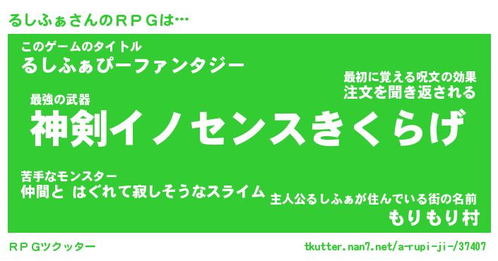 | ヘコむあだ名 | 『るしっふぃ~』『牛乳』『るしを』 |