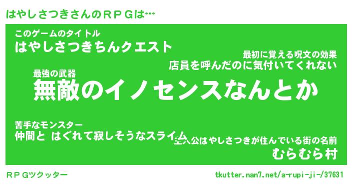 | 男性向けラノベタイトル風あだ名 | 『ハヤシサツキアートオンライン』 |