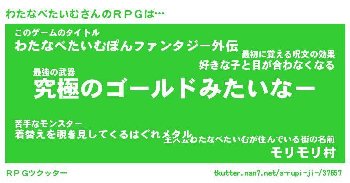 | 男性向けラノベタイトル風あだ名 | 『わたなべたいむの憂鬱』 |
