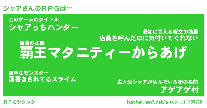 | ファンタジー風あだ名 | 『シャフェル』『エターナルシャアー』 |