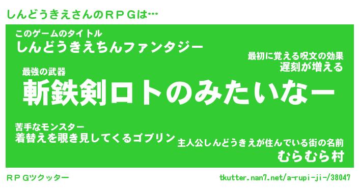 | 男性向けラノベタイトル風あだ名 | 『しんどうきえの憂鬱』 |