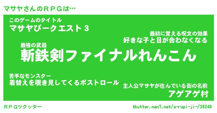 | 男性向けラノベタイトル風あだ名 | 『マサヤの憂鬱』 |