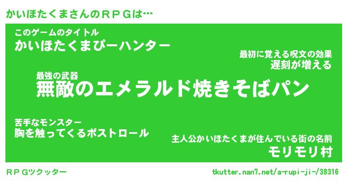 | 男性向けラノベタイトル風あだ名 | 『カイホタクマアートオンライン』 |