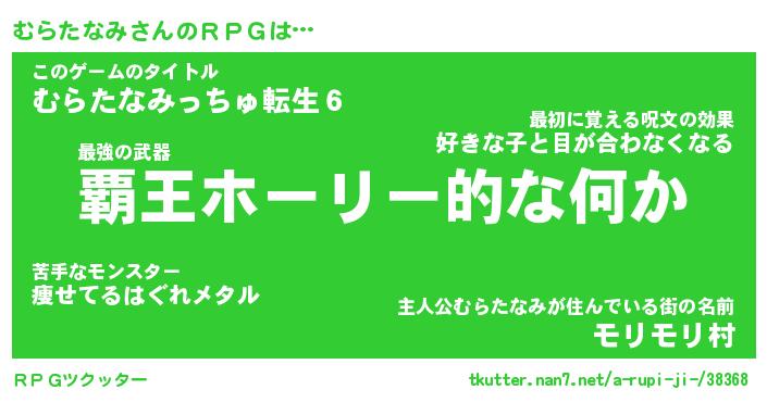 | 男性向けラノベタイトル風あだ名 | 『ムラタナミアートオンライン』 |