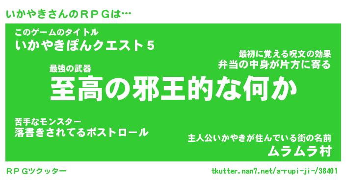 | 男性向けラノベタイトル風あだ名 | 『イカヤキアートオンライン』 |