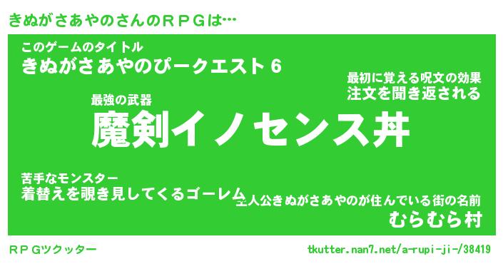 | 胡散臭い通販商品みたいなあだ名 | 『必ず成功する霊験あらたかなお札…その名も「きぬがさあやの」』 |