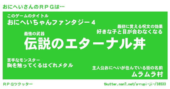 | 意味不明あだ名 | 『ペロリンおにへい』『永久保存おにへい』 |