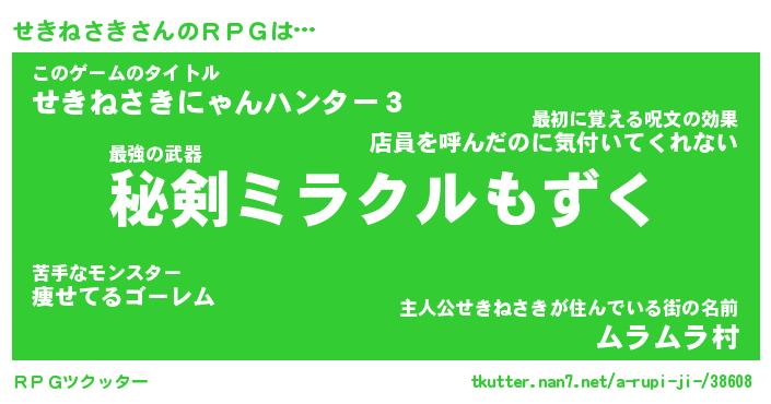 | 男性向けラノベタイトル風あだ名 | 『せきねさきの憂鬱』 |