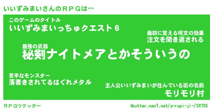 | 胡散臭い通販商品みたいなあだ名 | 『必ず成功する霊験あらたかなお札…その名も「いいずみまい」』 |