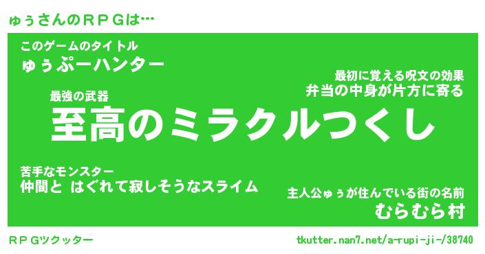 | ファンタジー風あだ名 | 『ュゥフェル』『エターナルュゥー』 |