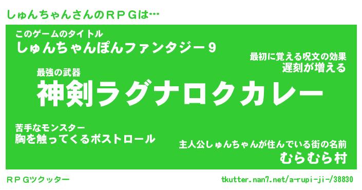 | 男性向けラノベタイトル風あだ名 | 『しゅんちゃんの憂鬱』 |