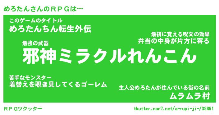 | 男性向けラノベタイトル風あだ名 | 『メロタンアートオンライン』 |