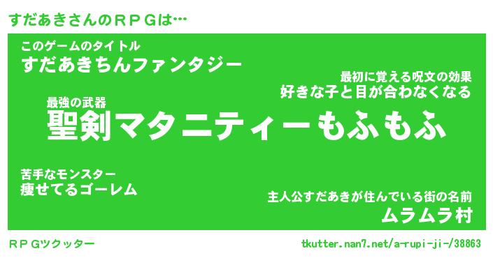 | 胡散臭い通販商品みたいなあだ名 | 『必ず成功する霊験あらたかなお札…その名も「すだあき」』 |