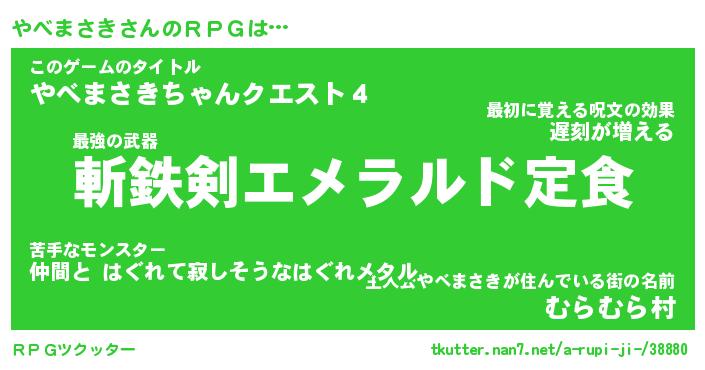 | ファンタジー風あだ名 | 『ヤベフェル』『エターナルヤベマサキー』 |