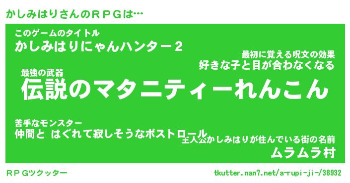 | 男性向けラノベタイトル風あだ名 | 『かしみはりの憂鬱』 |
