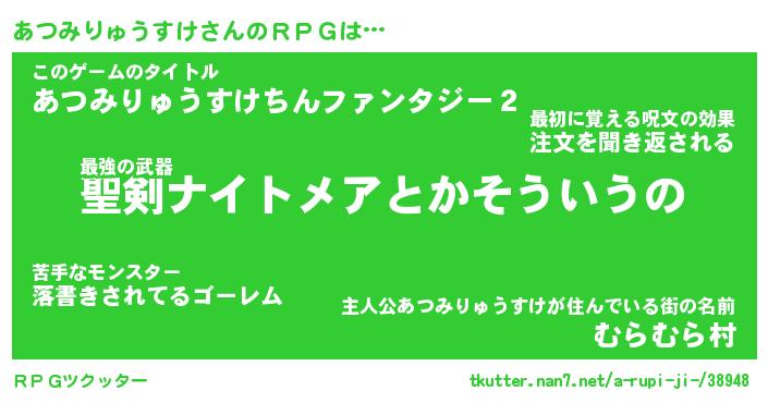 | 男性向けラノベタイトル風あだ名 | 『あつみりゅうすけの憂鬱』 |