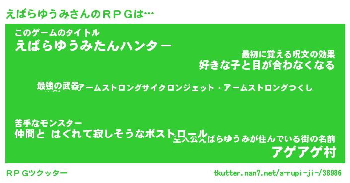 | 伝説のあだ名 | 『伝説の竜騎士えばらゆうみ』 |