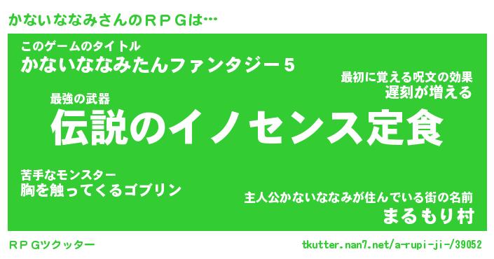 | 男性向けラノベタイトル風あだ名 | 『かないななみの憂鬱』 |